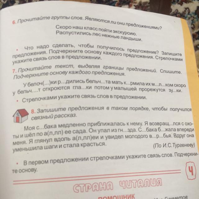 У белочки родились бельчата. (Основа: Бельчата родились). Мать кормила их молоком. (Основа: Мать кормила). Скоро у бельчат откроются глазки. (Основа: Глазки откроются). Потом у малышей прорежутся зубки. (Основа: Зубки прорежутся).
