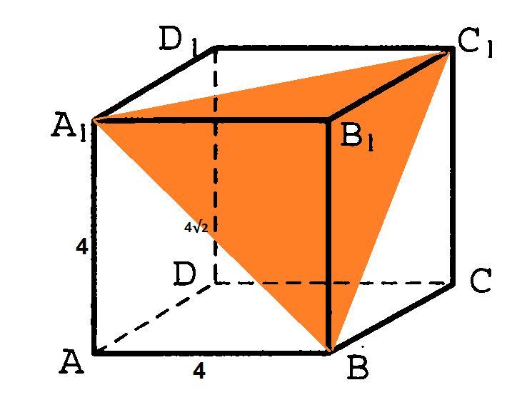 Ребро куба равно 4 см. Найти площадь сечения, образованного двумя диагоналями боковых граней, выходящих из одной вершины.