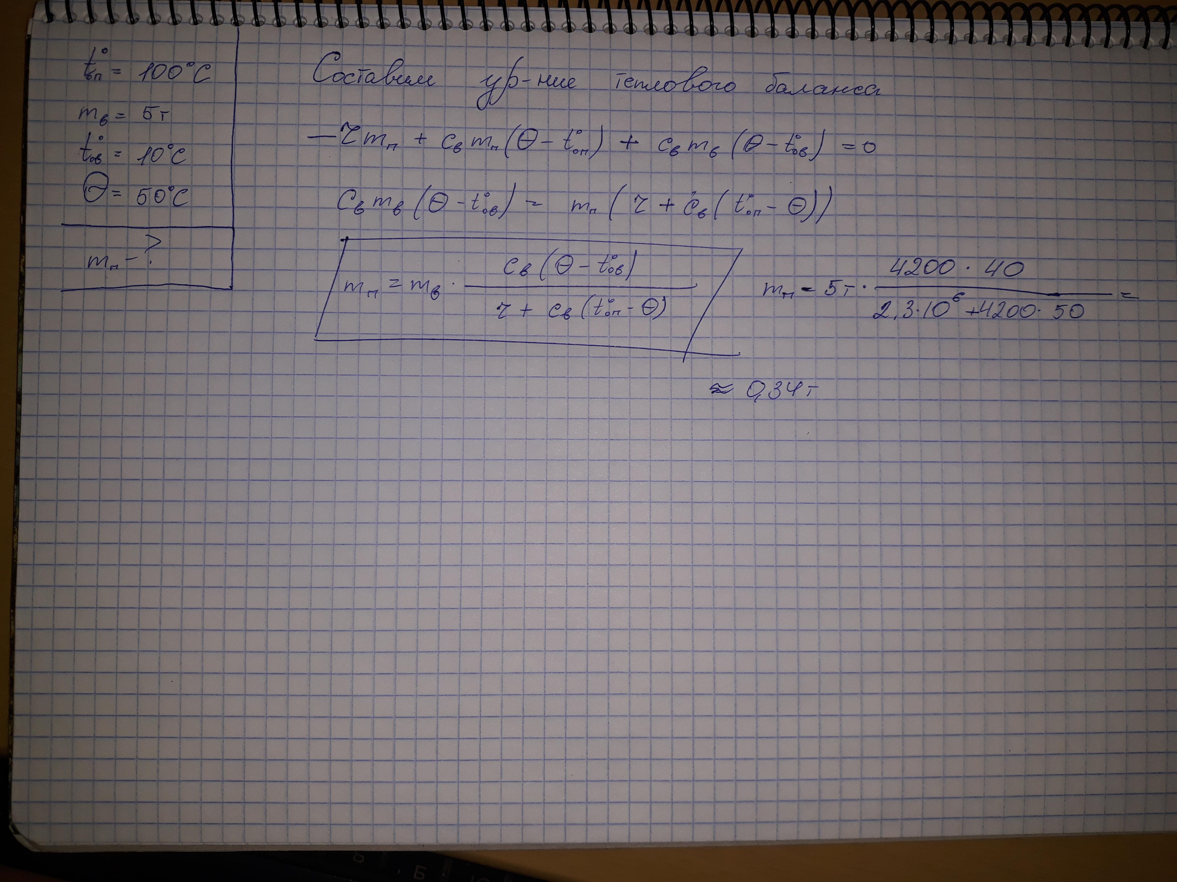 m1=m2*c*40/(L1+c*50) = 5000*4200*40/(2260000+4200*50) = 340кг