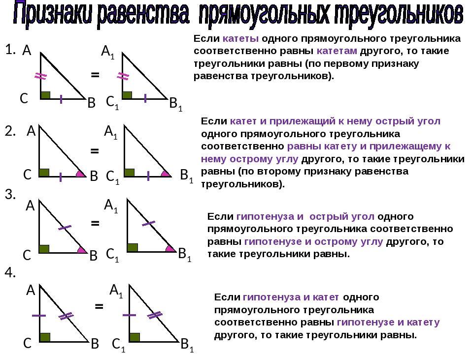 6.Сформулировать признаки равенства прямоугольного треугольника.