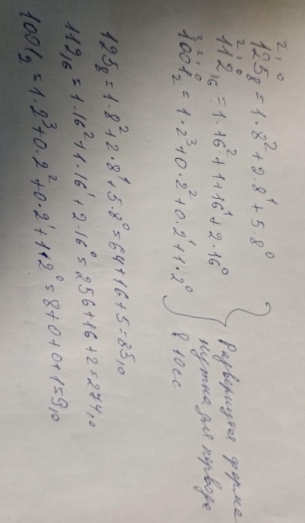 запишите развернутую форму для чисел и переведите числа в десятичную систему счисления: 1258, 11216, 10012.