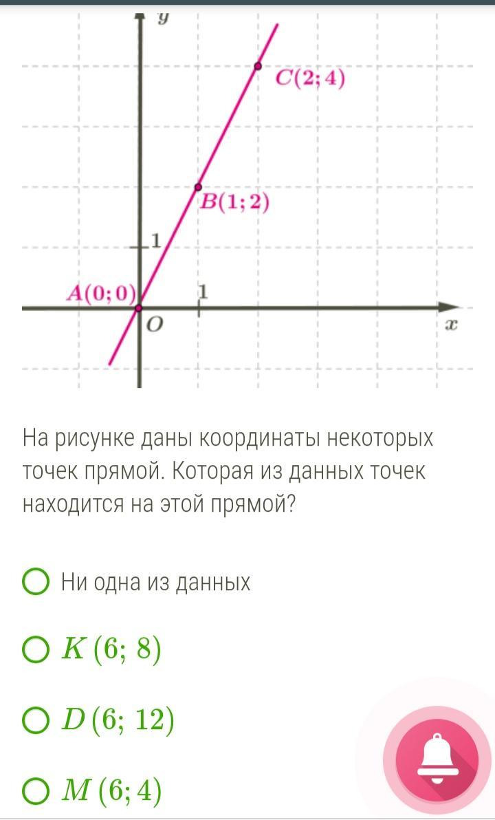 На рисунке даны координаты некоторых точек прямой. Которая из данных точек находится на этой прямой?