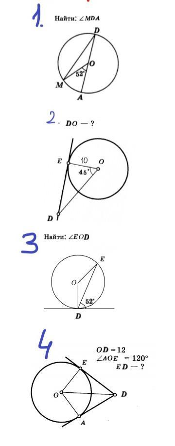 Объяснение: 1) угол МОА- центральный, он равняется дуги на которую опирается, значит, дуга будет 52 градуса. Угол МDA- вписанный, он равняется половине дуге, на которую опирается. Значит, угол МDA= 52:2=26 градусов.