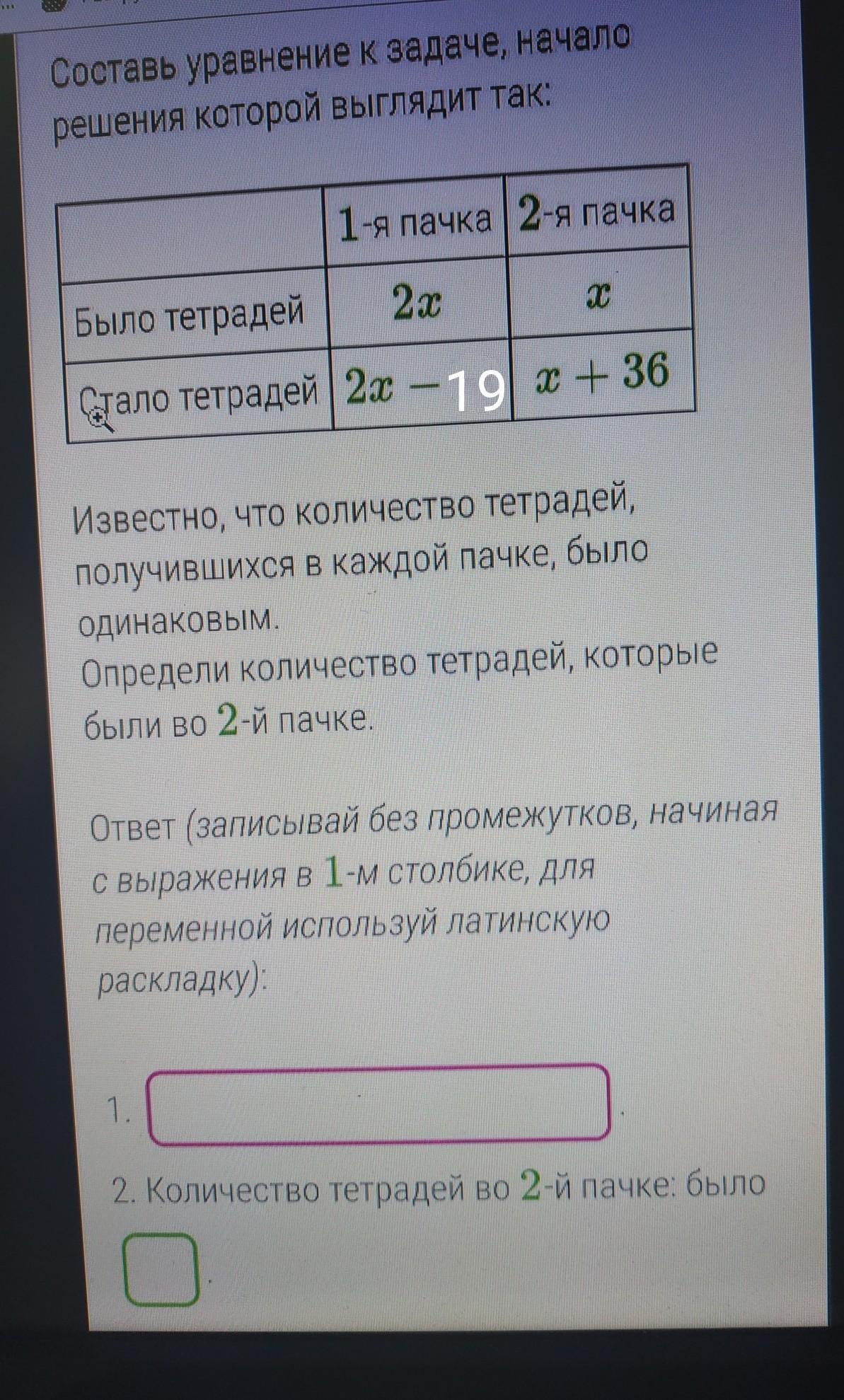 1)2x-19=x+36