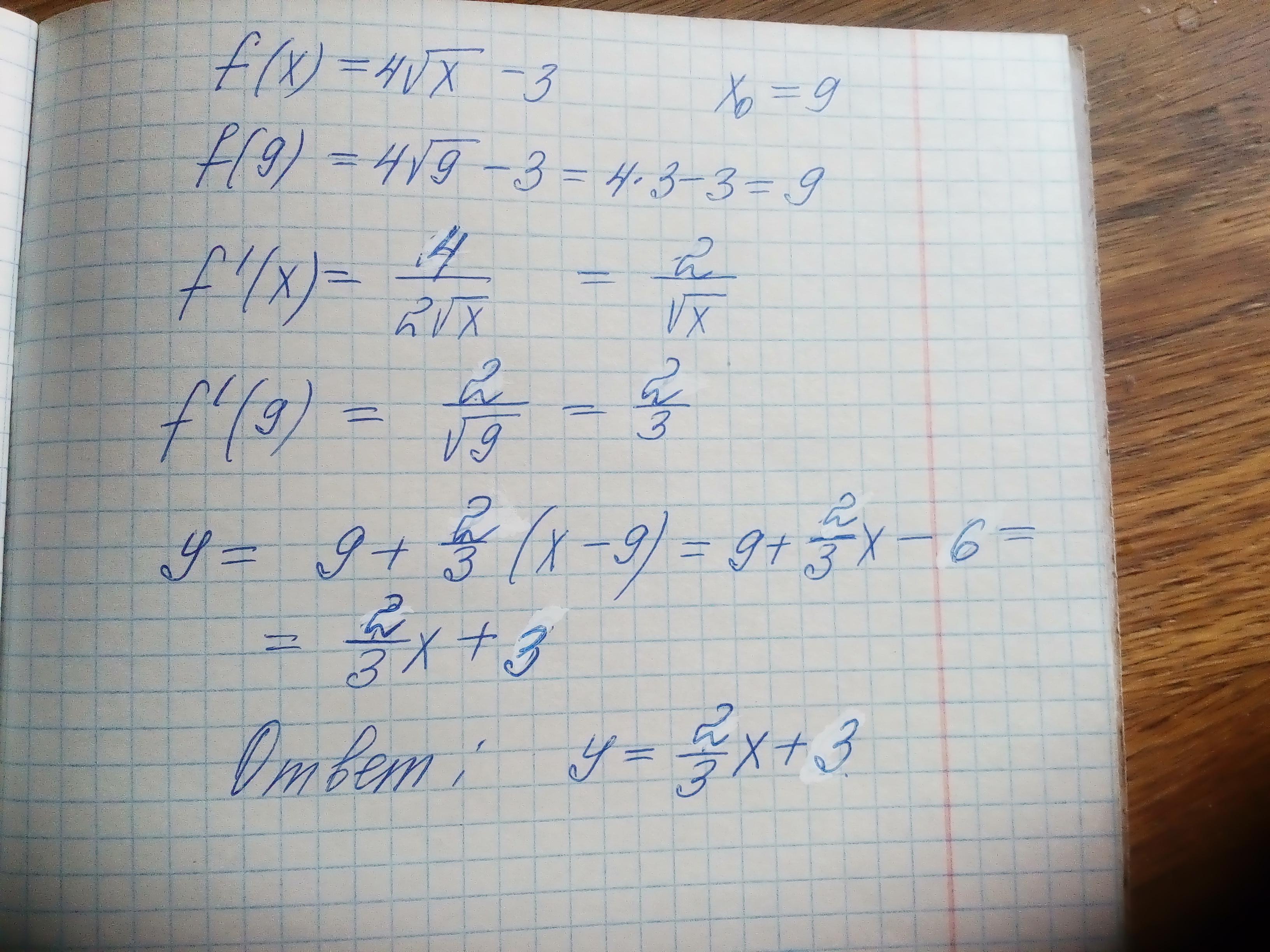 Составьте уравнение касательной к графику функции f в точке с абсциссой х0, если: