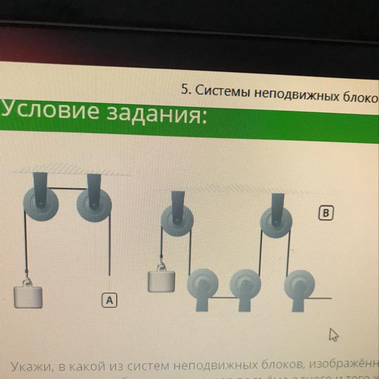 Укажи в какой из систем неподвижных блоков , изображённых на рисунках надо приложить большую Силу для подъема одного и того же груза весом 18 Н, если трение в каждом из блоков одинаковое.