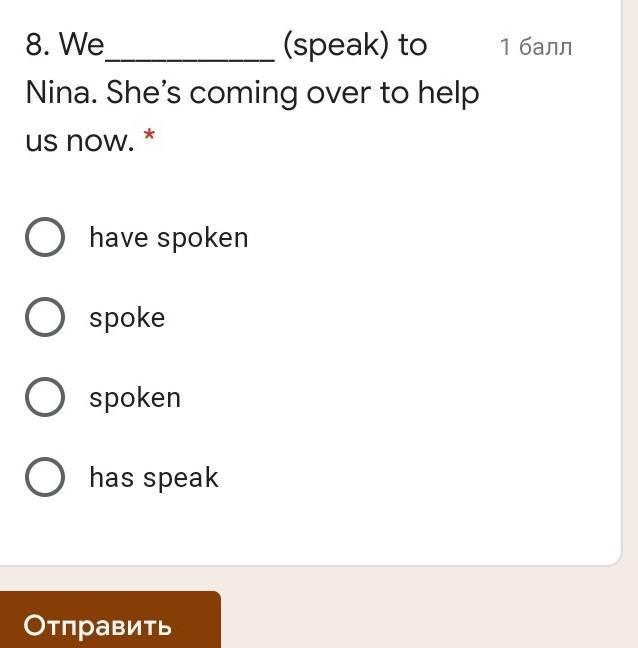 ответ: Have spoken потому что ето теперешній доконанай час.
