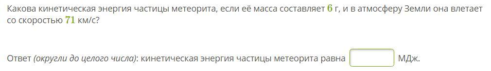 Ответ (округли до целого числа): кинетическая энергия частицы метеорита равна