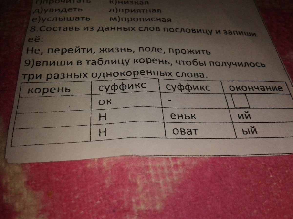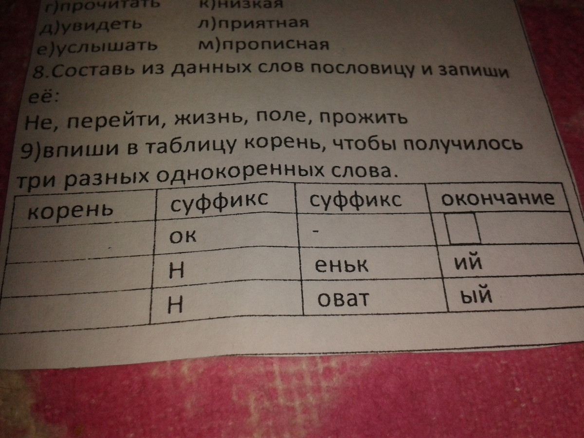 впишите в таблицу корень , чтобы получилось три разных однокоренных слова ! помогите !Пожалуйста! Номер 9.