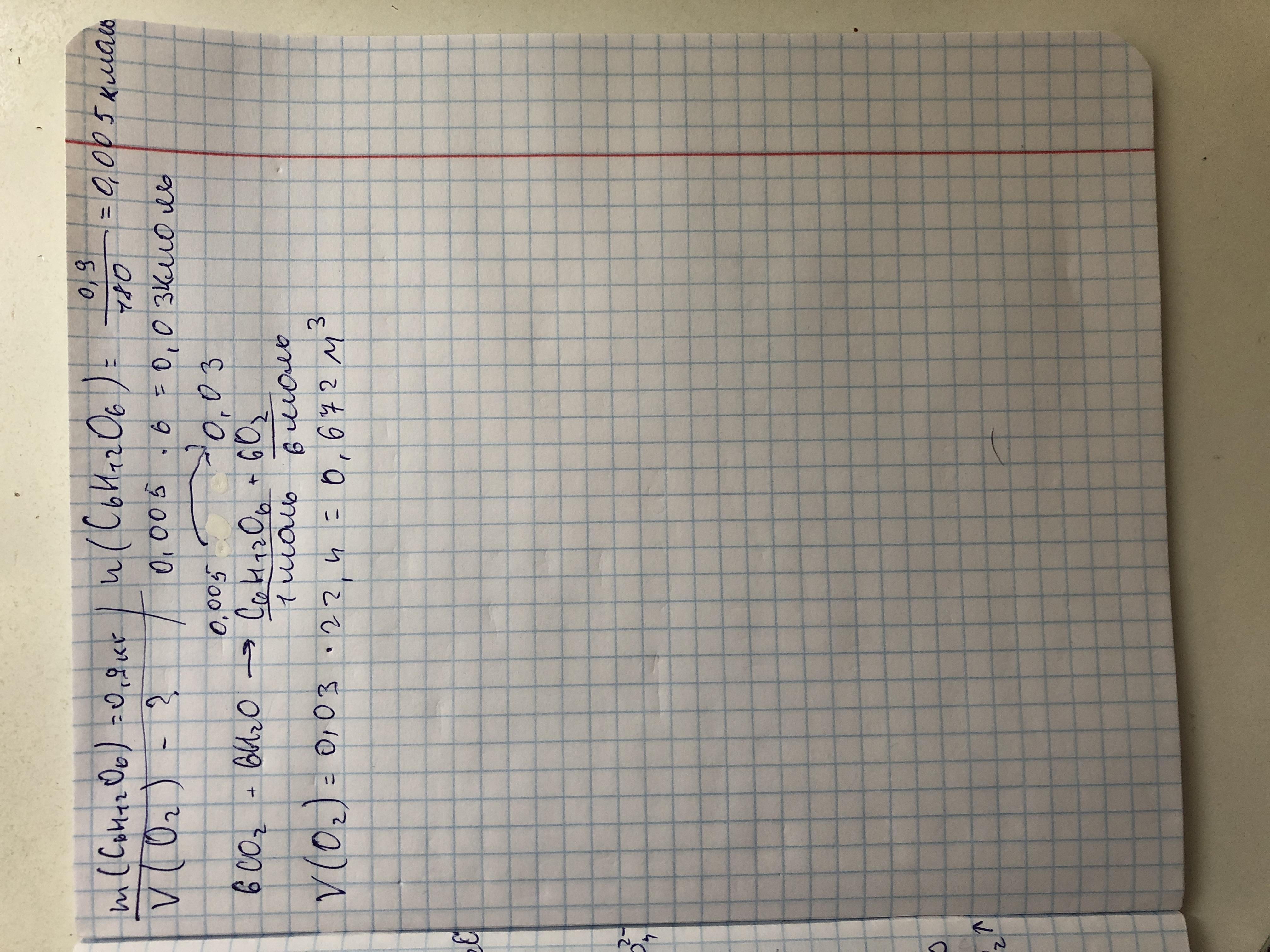 Сколько литров кислорода выделится в процессе фотосинтеза , если глюкозы образовалось 0,9 кг.
