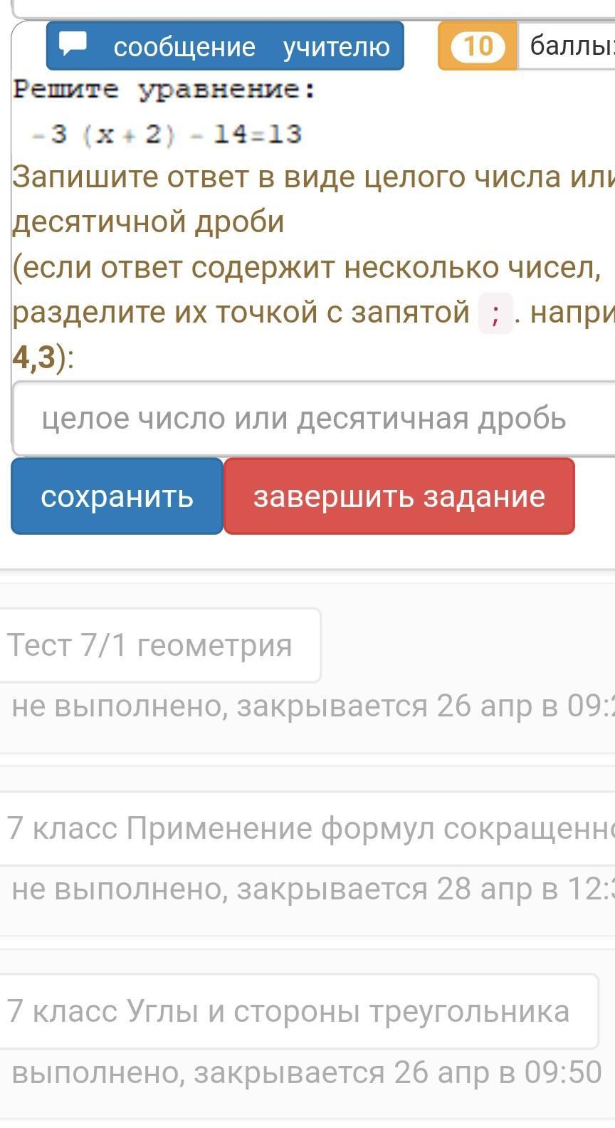 Решение уравнения на фото