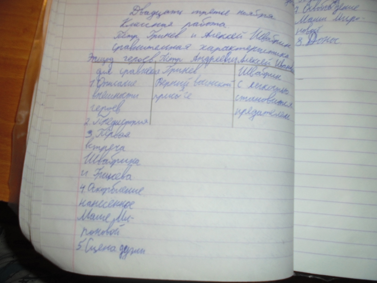 Два офицера российской армии — Петр Гринев и Алексей Швабрин ведут себя совершенно по-разному: первый следует законам офицерской чести и хранит верность воинской присяге, второй с легкостью становится предателем. Гринев и Швабрин — носители двух принципиально различных мировоззрений. Именно такими их изображает автор повести "Капитанская дочка".