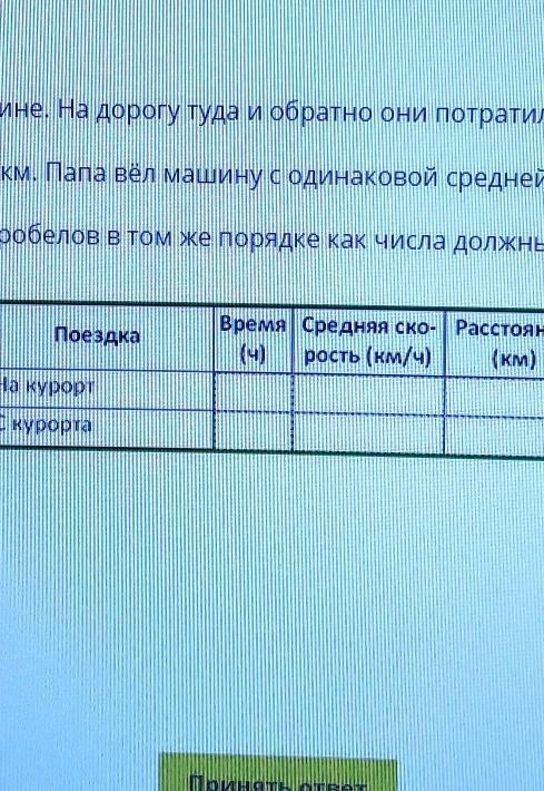 Теперь, что бы узнать время, которое они ехали, берём сначала протяжность пути к курорту и делим на скорость, соответственно узнаём, сколько за растили время на приезд к курорту. 420/70=6 часов - была в пути семья к курорту.