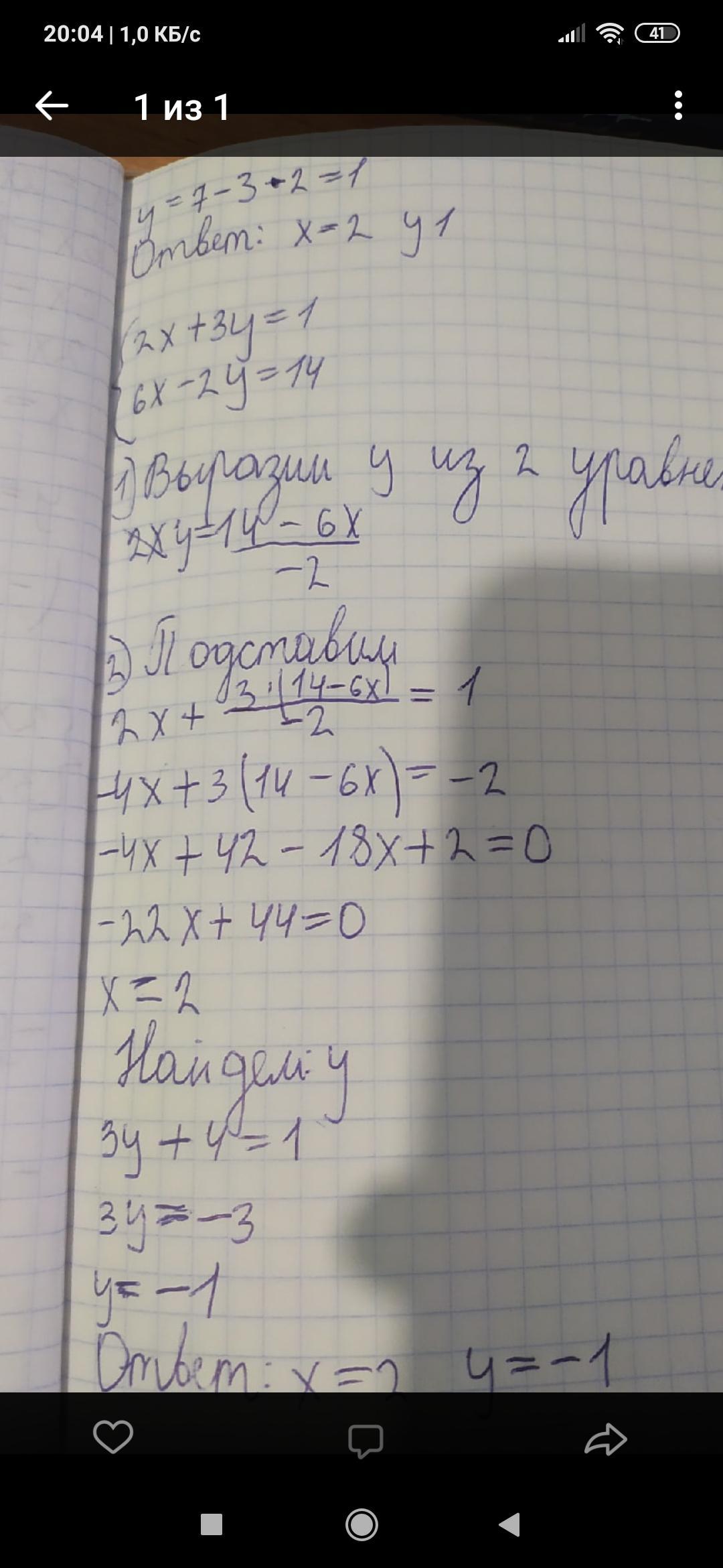 Там сначала 6х переводим в другую сторону получается -2у=14-6х потом у=14-6х/-2