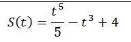v(t)=s'(t)=(t⁵/5-t³ +4)'=1/5·5t⁴-3t²=t⁴-3t²