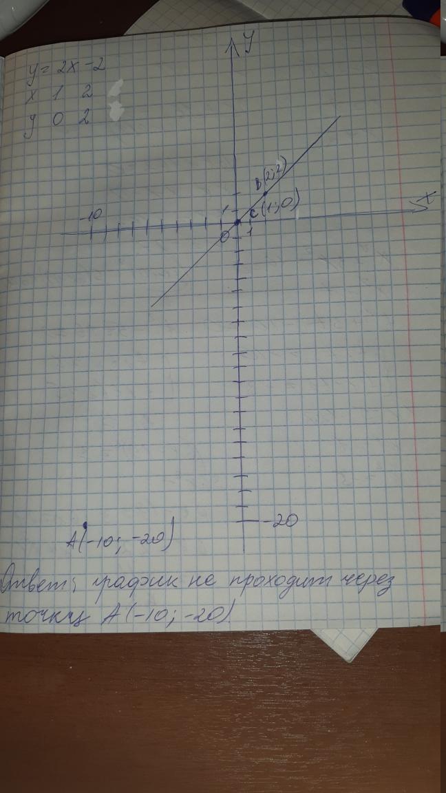 3. а) Постройте график функции y = 2x – 2. б) Определите, проходит ли график функции через точку А (–10; –20).
