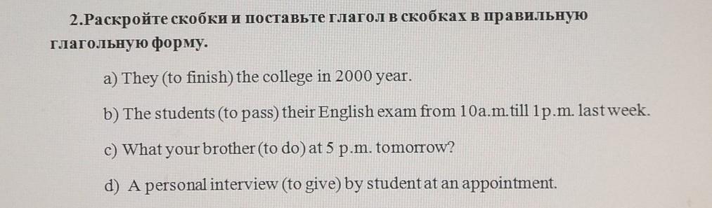 b) the students pass their English exam from 10 a.m. till 1 p.m. last week