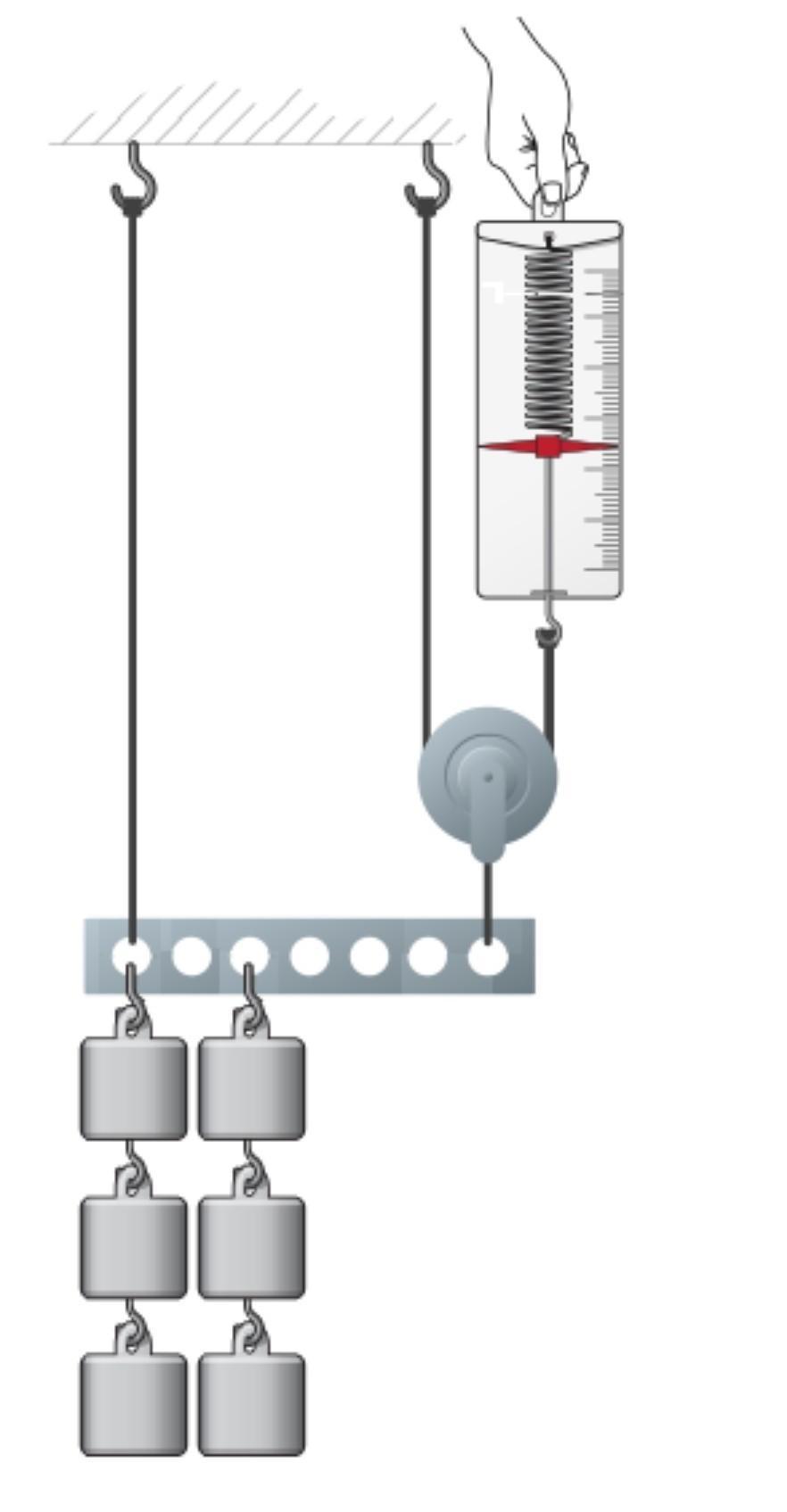 Определи показания динамометра, если вес каждого груза равен 17 Н.