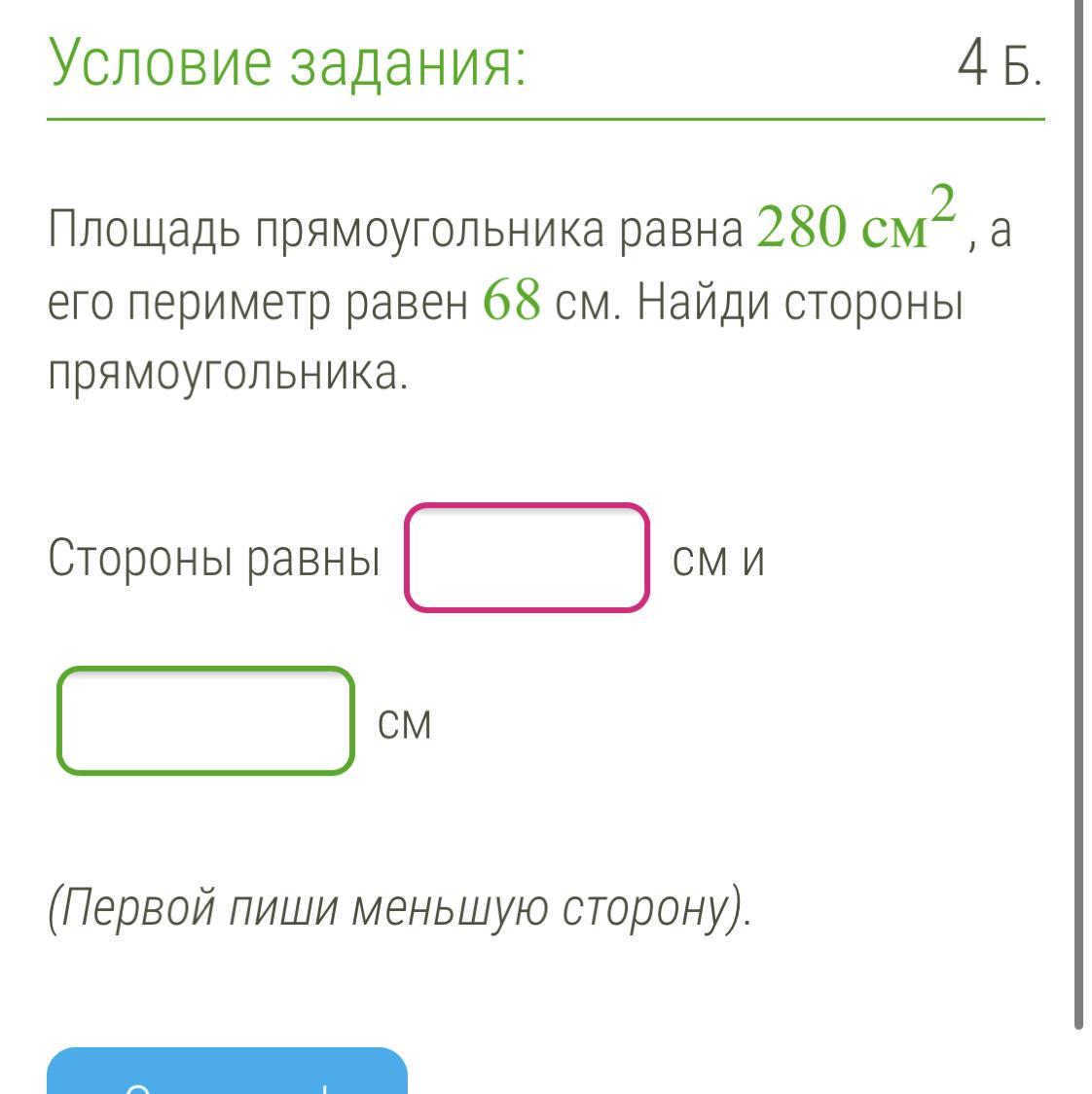 b₁= 14 см, a₁ =34 - b₁ =34-14=20 см