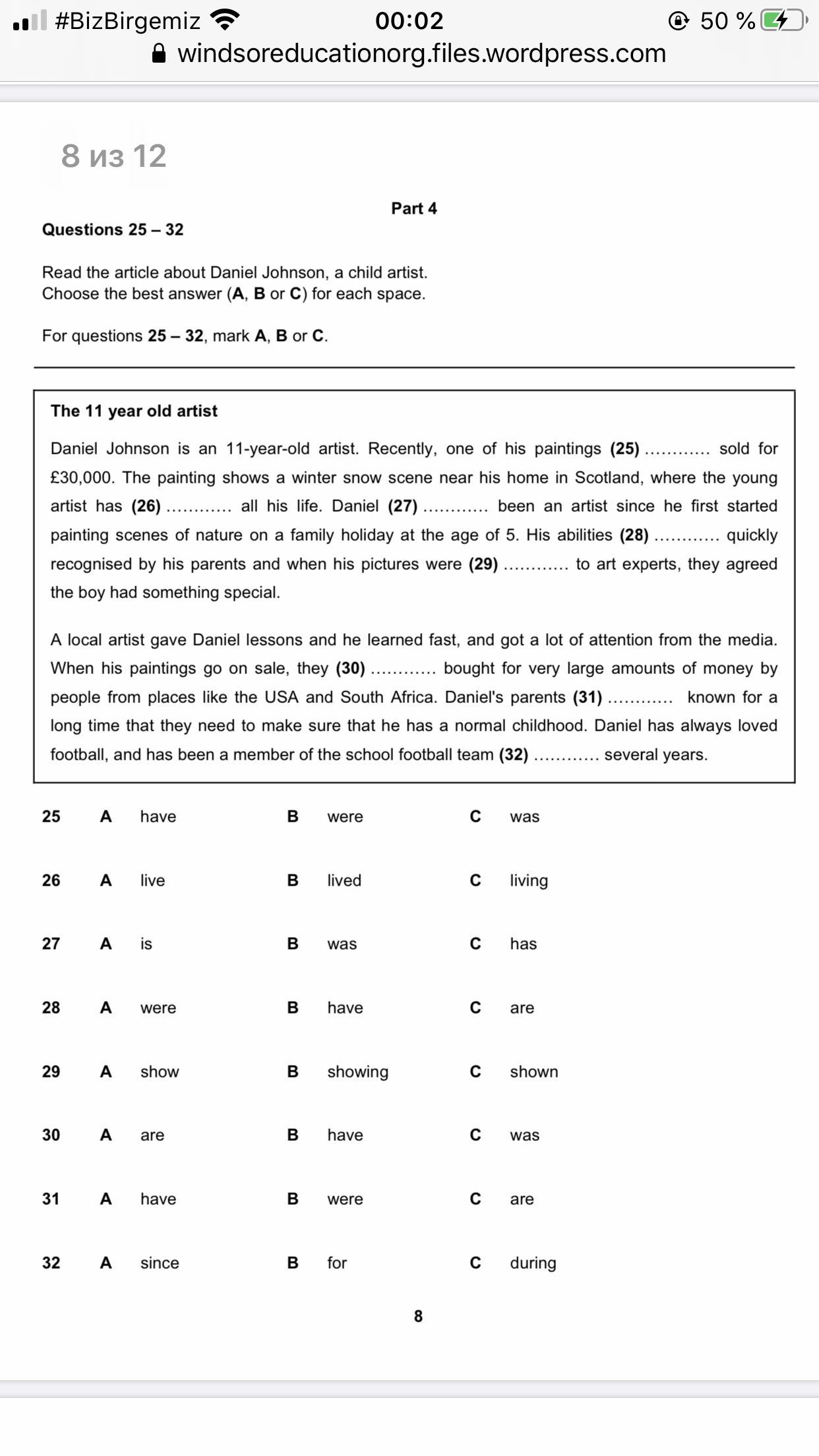 25. C (was)
