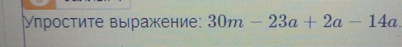 Пошаговое объяснение:30m-23a+2a-14a=30m-21a-14a=30m-35a