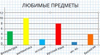 Глядя на диаграмму, подчеркните, сколько всего учеников любят математику и иностранные языки.