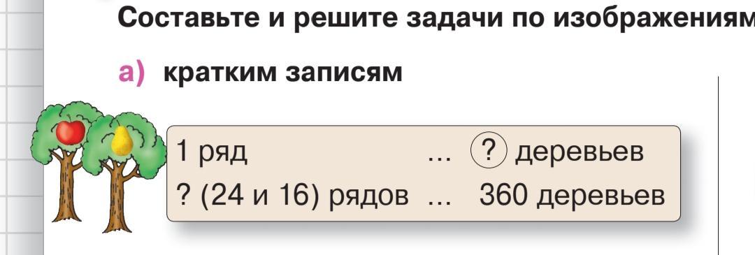 "В саду посадили 24 ряда яблонь и 16 рядов груш, с одинаковым количеством деревьев в каждом ряду. Сколько было деревьев в одном ряду, если всего посадили 360 деревьев?"
