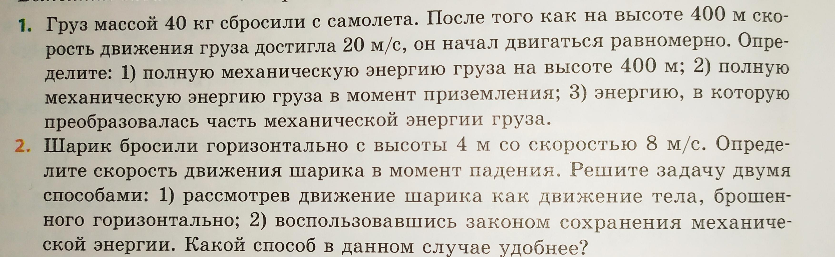 Тема:,,Применение законов сохранения энергии и импульса в механических явлениях''.Физика,9 класс.25 баллов.Решить 2 задания.За ложный ответ-бан.