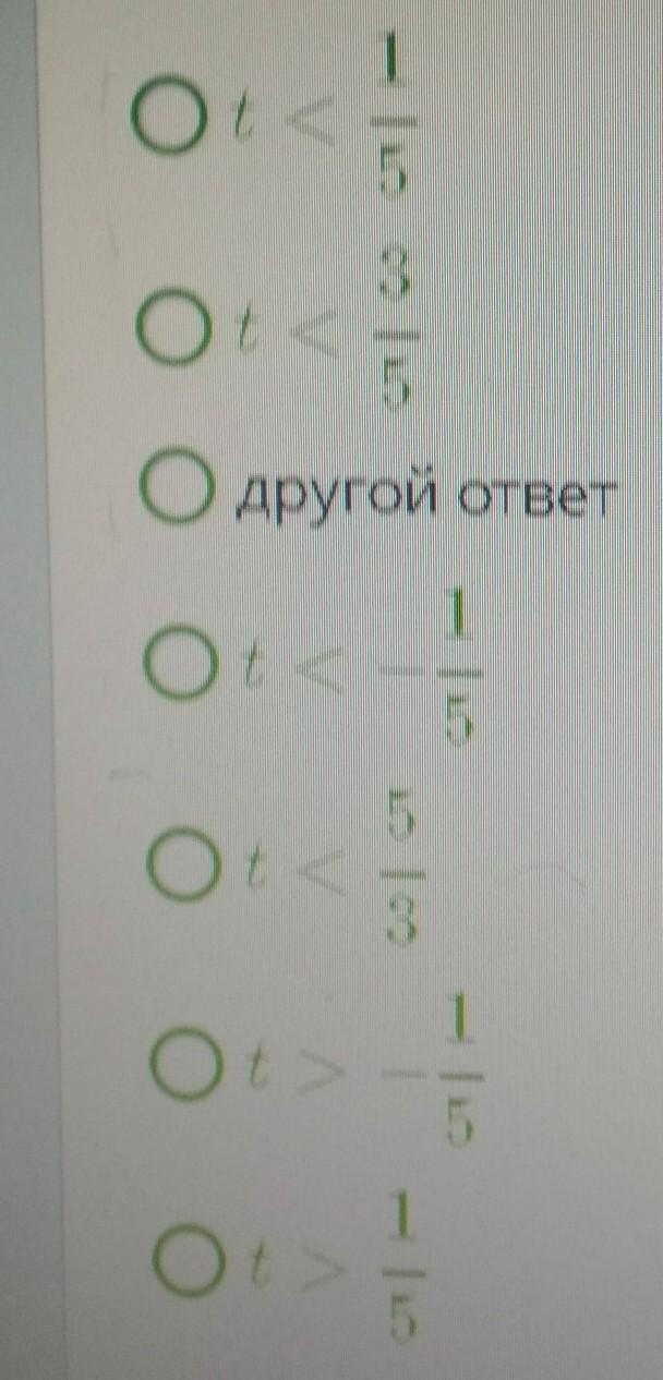 при каких значениях t двухчлен 5t+2 принимает значение меньше чем 1? выберите правильный ответ