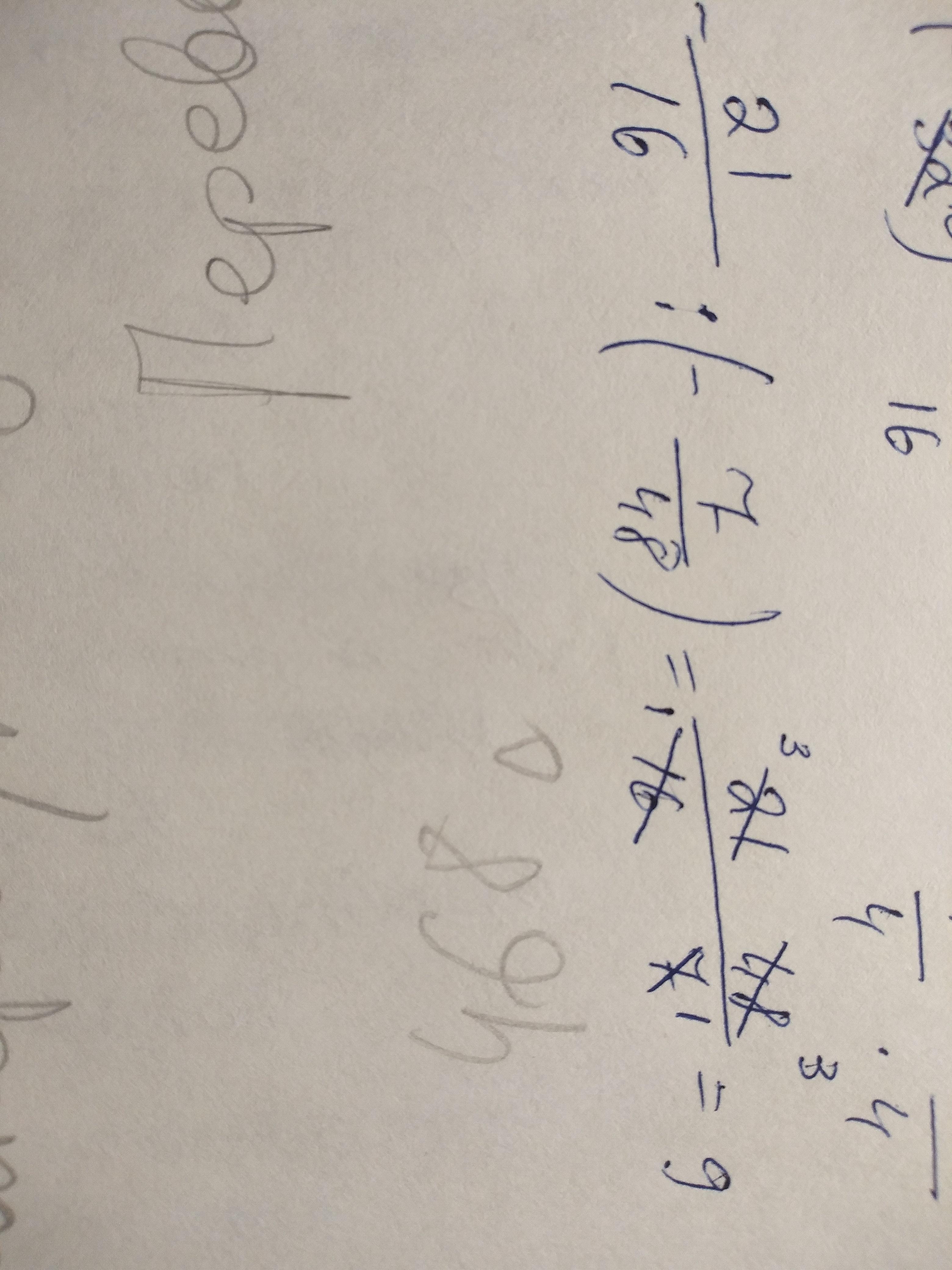 переворачиваешь 2ую дробь, получаешь -(21*48)/(16*7)