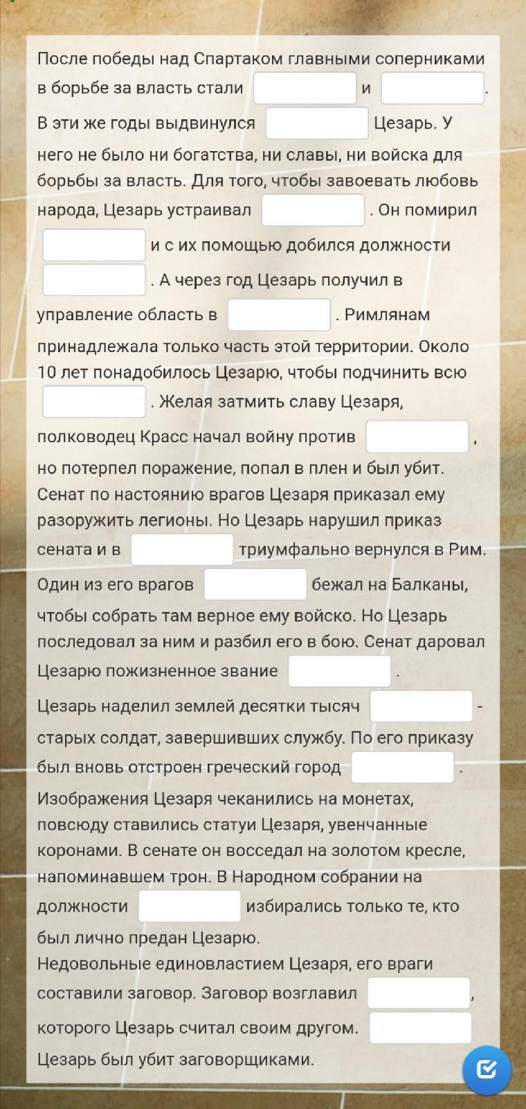 Гней Помпей и Марк Лициний Красс , Гай Юлий Цезарь , бесплатные зрелища , Красс с Помпеем , консула ,Предальпийсскую Галию , Заальпийскую Галлию , Парфии , 74г или 49г до н.э.,Помпей , диктатор , ветеранов , Карфаген , трибунов и консулов , Марк Брут , 15 марта 44 г до н. э. .