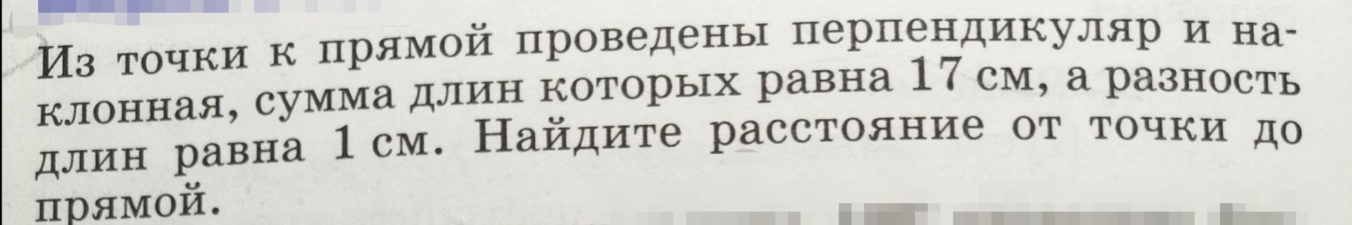 Тк их сумма равна 17 см, а разность 1 см, то перпендикуляр(более короткая прямая) равна (17-1):2=8см.