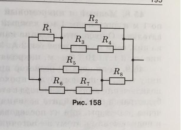 Найдите общее сопротивление цепи, если сопротивление резисторов соответственно равны: R1=8(Ом) R2=44(Ом) R3=8(Ом) R4=369Ом) R5=14(Ом) R6=2(Ом) R7=12(Ом) R8=23(Ом)