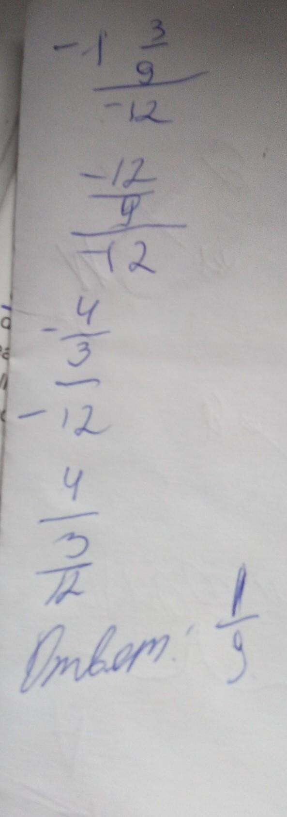 -1 3/9: (-12) =(-12/9):(-12) =1/9