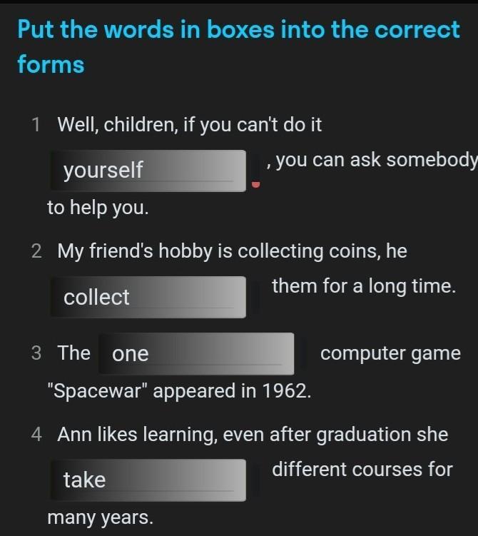 1 yourselves 2 has been collecting 3 first 4 has taken