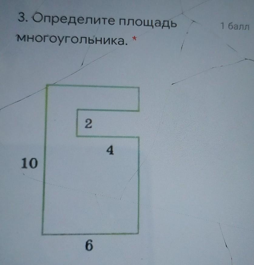 Пошаговое объяснение: сначала находим площадь "ямы" в многоугольнике: 2·4=8 см2. Потом находим площадь прямоугольника, т.е. 10·6=60 см2. Последнее действие заключается в том, чтобы вычесть площадь прямоугольника из площади "ямы": 60-8=52 см2.