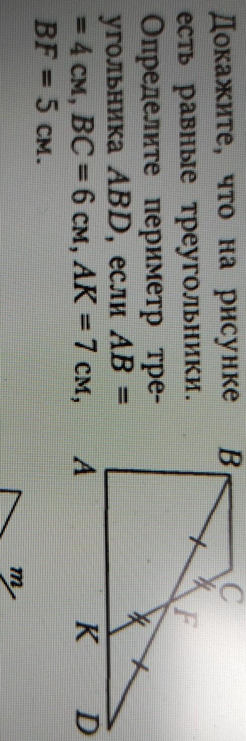 Рассмотрим ∆FBC и ∆FKD. Углы BFC и КFD равны как вертикальные и КF = FC ; DF = FB (по условию), тогда ∆FBC = ∆FKD по двум сторонам и углу между ними.