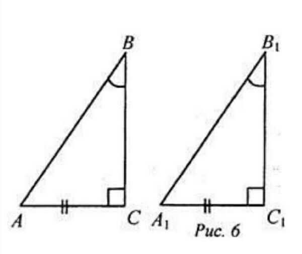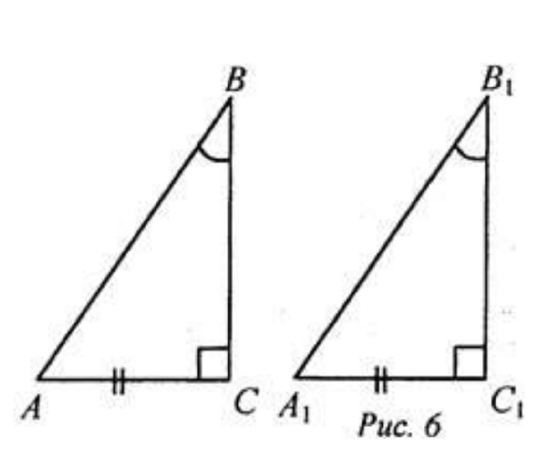Если катет и прилежащий к нему острый угол одного прямоугольного треугольника соответсвенно равны катету и прилежащему к нему острому углу другого прямоугольного треугольника, то такие треугольники равны.