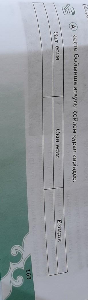 Кесте бойынша атаулы сөйлем құрап көріңдер.