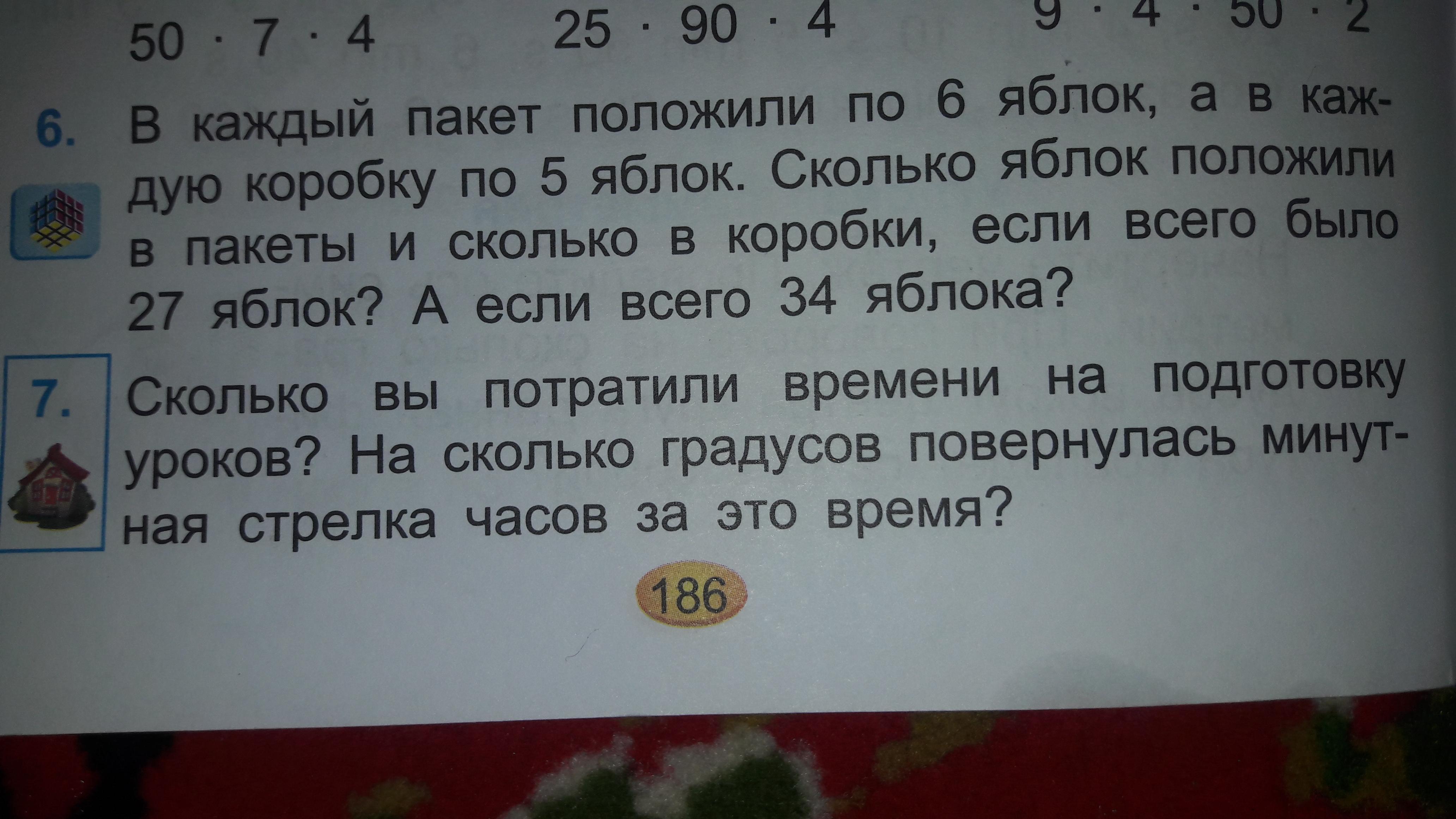 Значит в первом случае у нас получается 3 коробки и 2 пакета.
