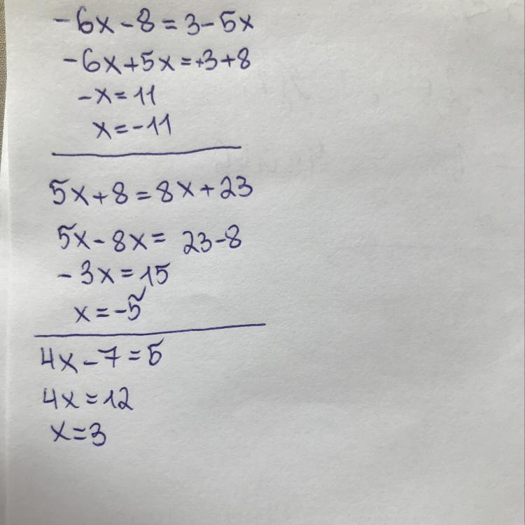 1)-6х-8=3-5х