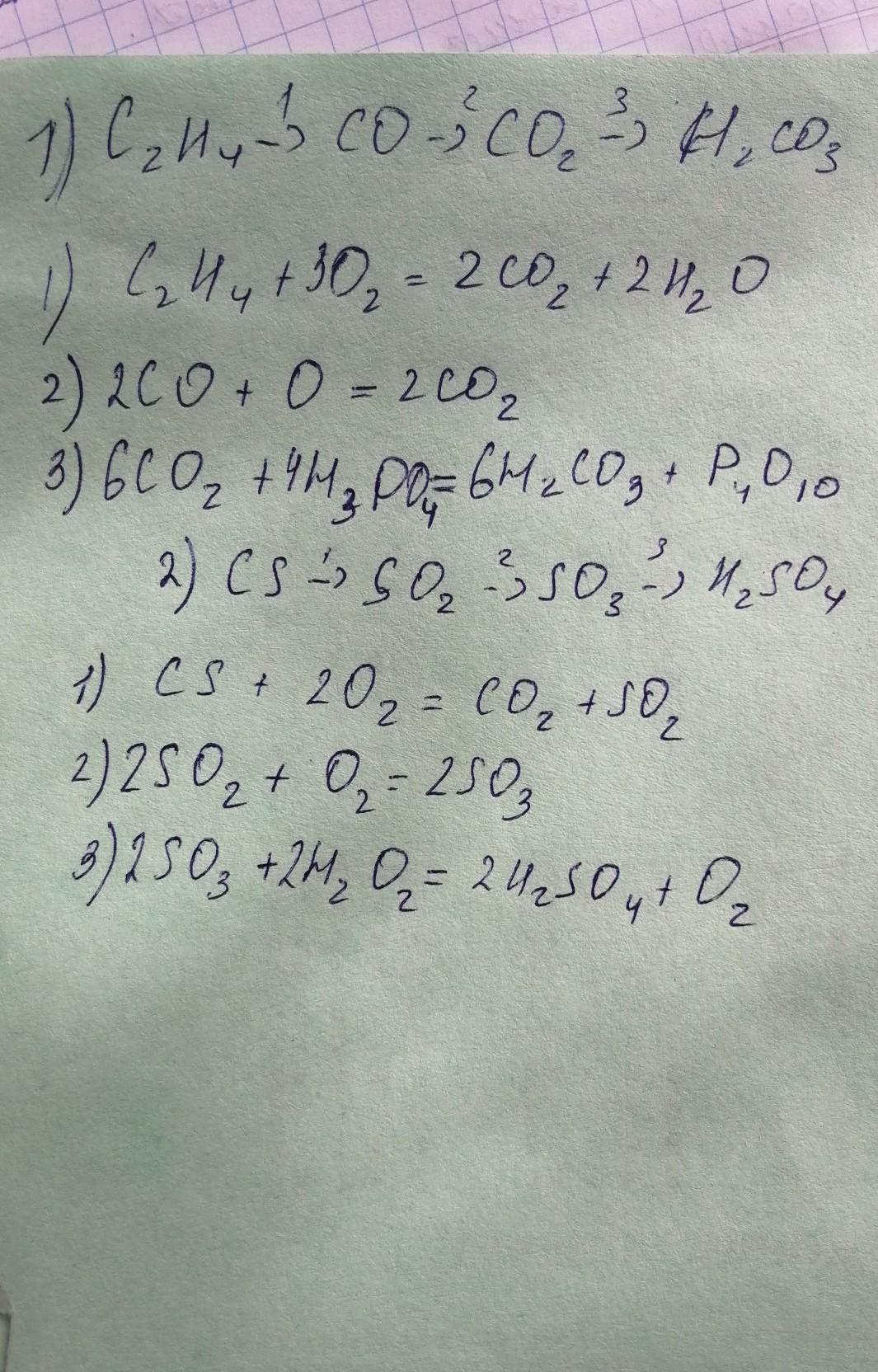 1. C2H4⇾CO⇾CO2⇾H2CO3;