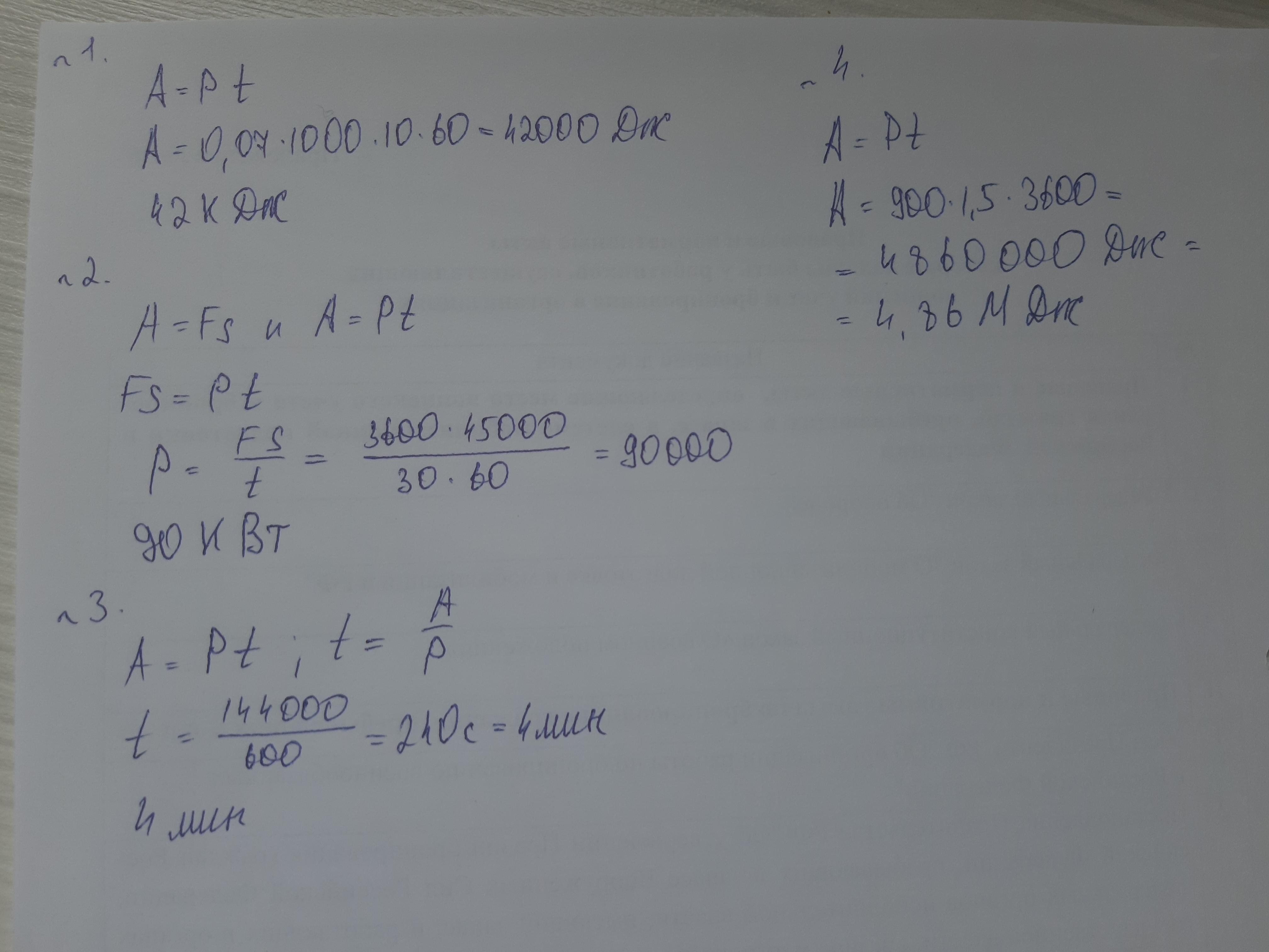 Вычислите работу в (МДж), производимую двигателем мощностью 0,9 кВт