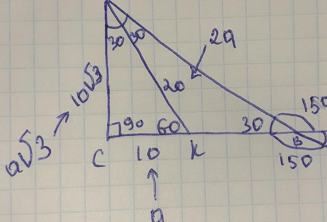 маленький треугольник это прямоугольный треугольник.Есть треугольники 30 60 90 градусов и 45 45 90 градусов.У каждого из них есть свои пропорции.20:2=10.Значит а=10.Дальше просто под а подставляешь 10.Поэтому,СК=10