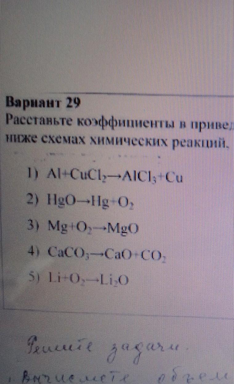 уравнение реакции с раставлением коэффициентов