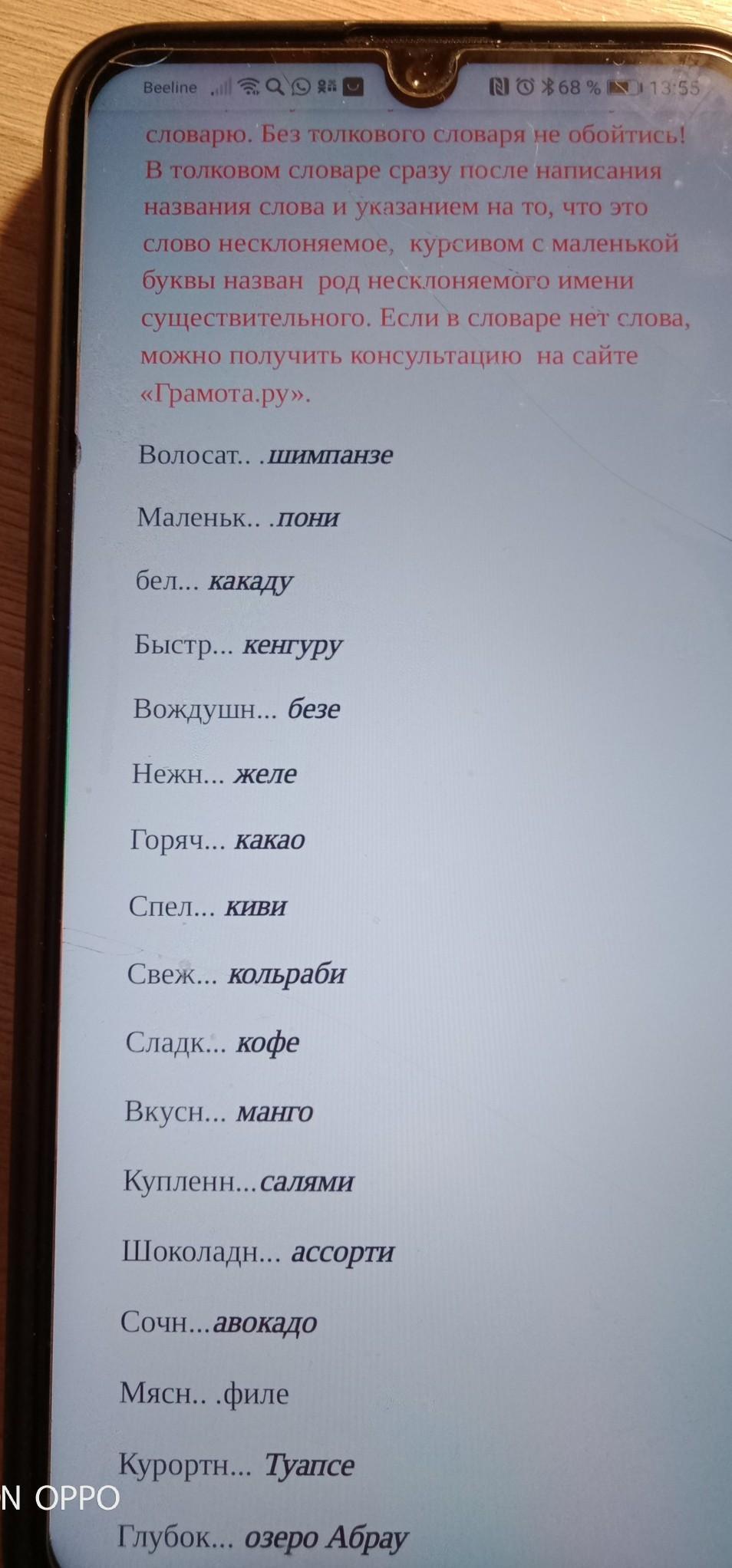 Волосатое шимпанзе, маленький пони, белый какаду, быстрый кенгуру, воздушное безе, нежное желе, горячее какао, спелое киви, свежее кольраби, сладкое кофе, вкусное манго, купленное салями, сочное авокадо, мясное филе, курортное Туапсе, глубокое озеро Абрау