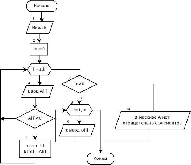 Найти минимальный элемент среди положительных элементов исходного массива.Записать в виде блок-схемы.