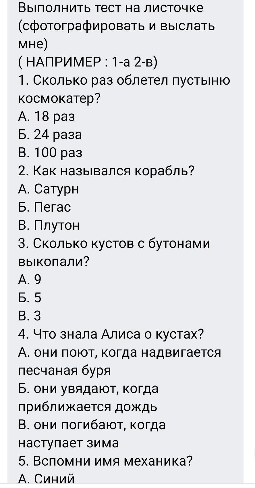 помогите пожалуйста делать домашнее задание по литературе продолжение б) зелёный, в. Фиолетовый. 6)что схватил отец Алисы чтобы защититься от кустиков. А. швабру. Б. Веник. В. метлу. Тема урока Кир Булычёв Путешествие Алисы