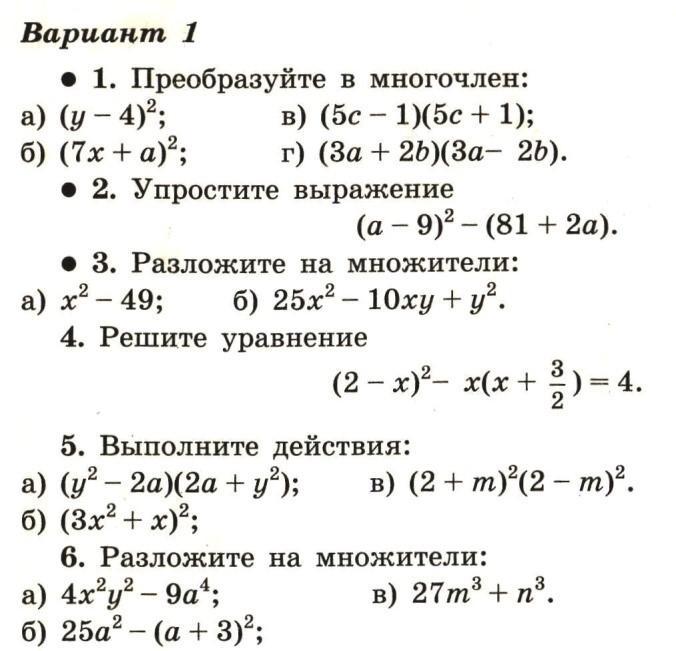 в) (2+м)²(2-м)²=((2+м)(2-м))²=(4-м²)²= 16-м⁴|здесь решение с использованием с-ва степени. В 7 классе его не изучают(вроде бы), если что. Поэтому учитель может увидеть конкретно в этом примере, что списано!!! А если учили, то тогда норм.