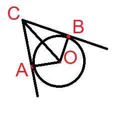 Из точки C проведены две касательные к окружности, точки касания - A и В Определи равные отрезки и углы.